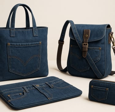 * Creatividad ilimitada: Un viejo par de jeans puede convertirse en un sinfín de productos: desde bolsos shopper y bandoleras, hasta fundas para laptops o pequeños estuches. Los bolsillos, las costuras y las pretinas originales pueden integrarse en el nuevo diseño, dándole un toque auténtico y reduciendo el desperdicio.